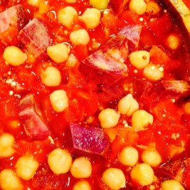 - When potatoes are slightly soft, add cilantro, tomatoes, chickpeas and stir for 1-2 minutes.