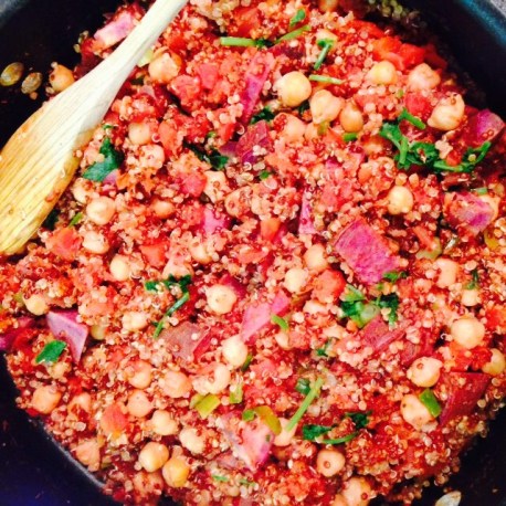 When I cook, I usually throw things together and hope for the best. Success. Here I sautéed potatoes with garlic and ginger, then added quinoa, tomatoes, garbanzo beans and water. I made a LOT and have been eating it all week at work on top of arugula. BOMB.