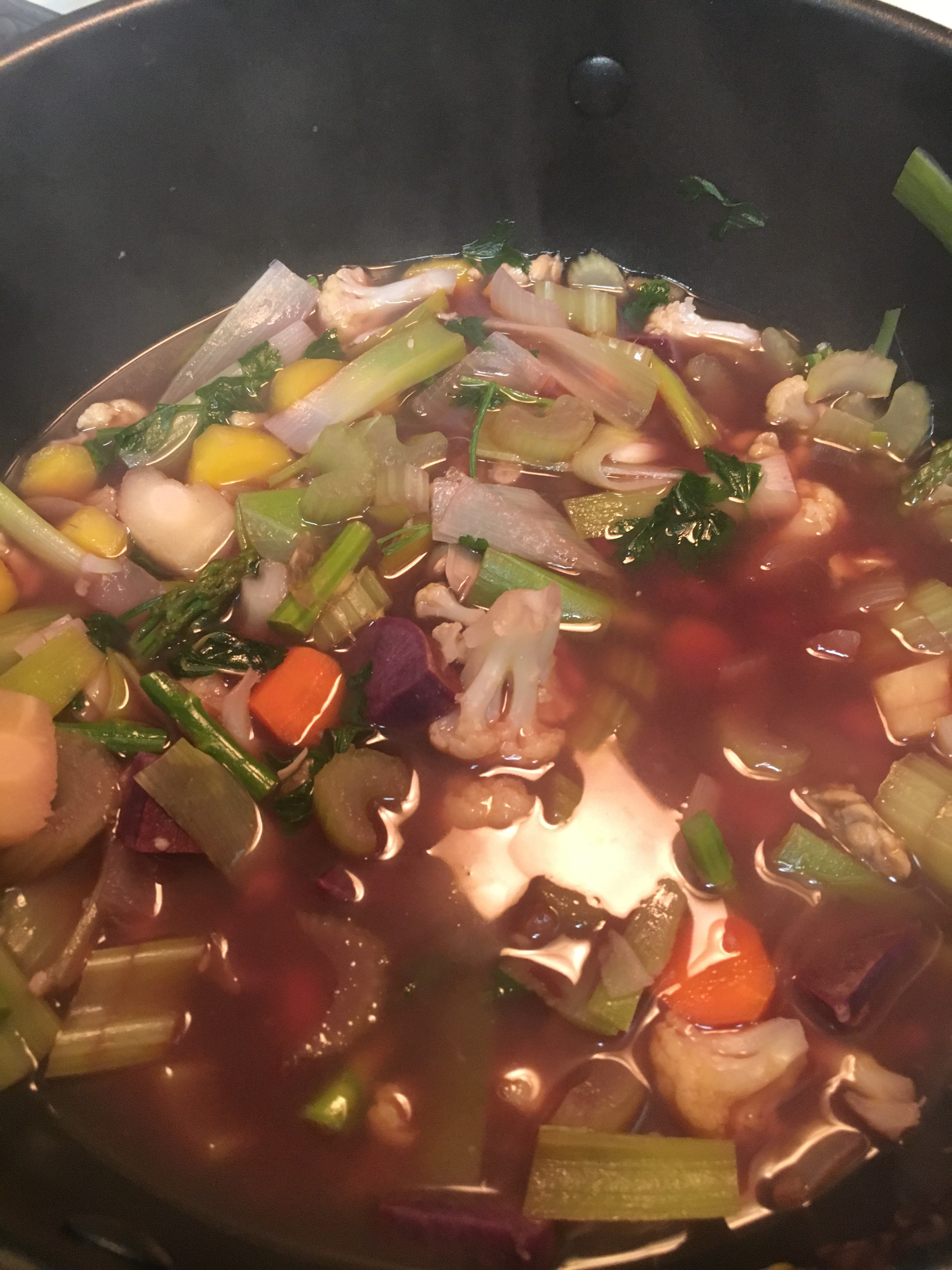 I had been feeling under the weather. I couldn’t stomach anything. For me to not eat breakfast past 11am is a bad sign. So, I decided to gather some ingredients to throw them into a soup. Soups are an excellent way to get in nutrients you body needs to feel better. This took less than 45 minutes from start to finish as well!