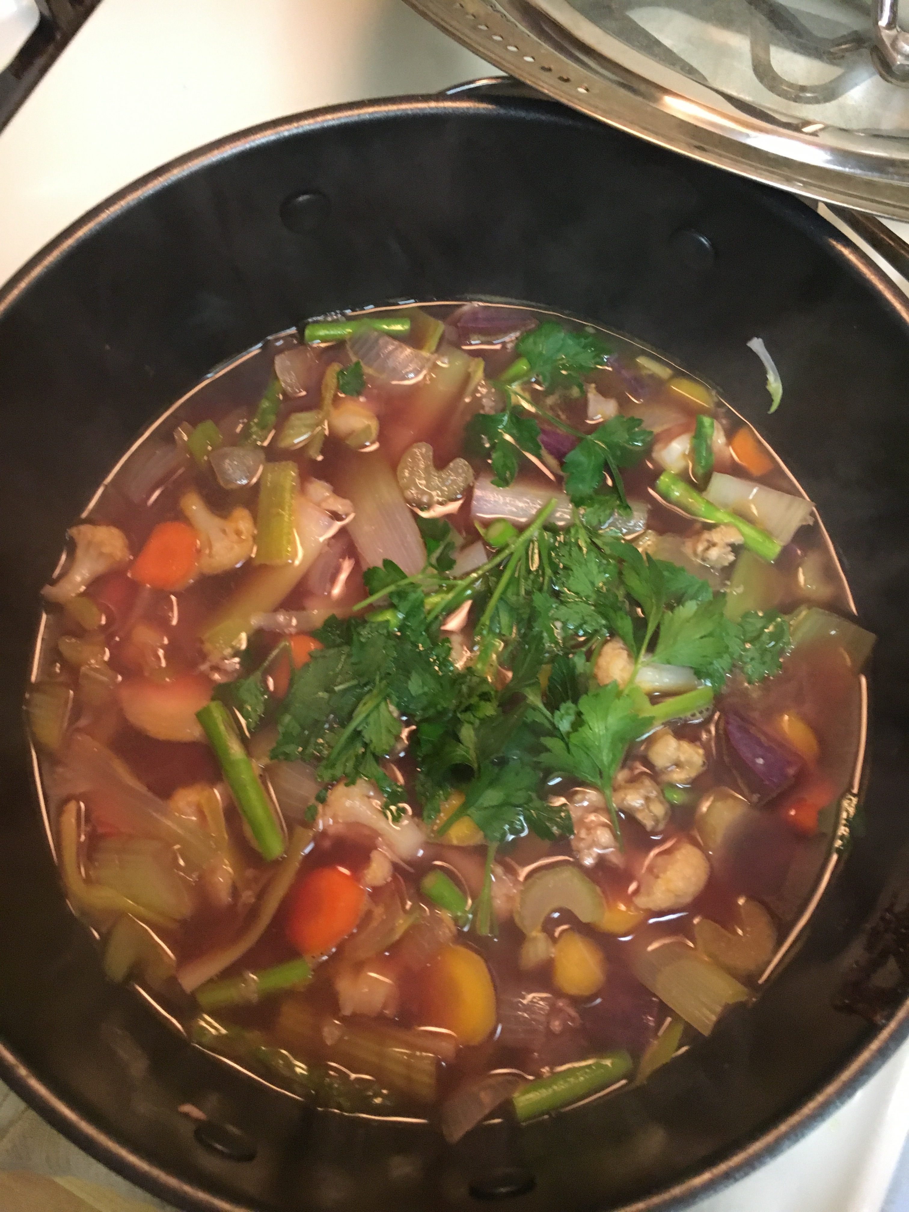 - Gently add the rest of the ingredients to pot (except parsley and lemon)
