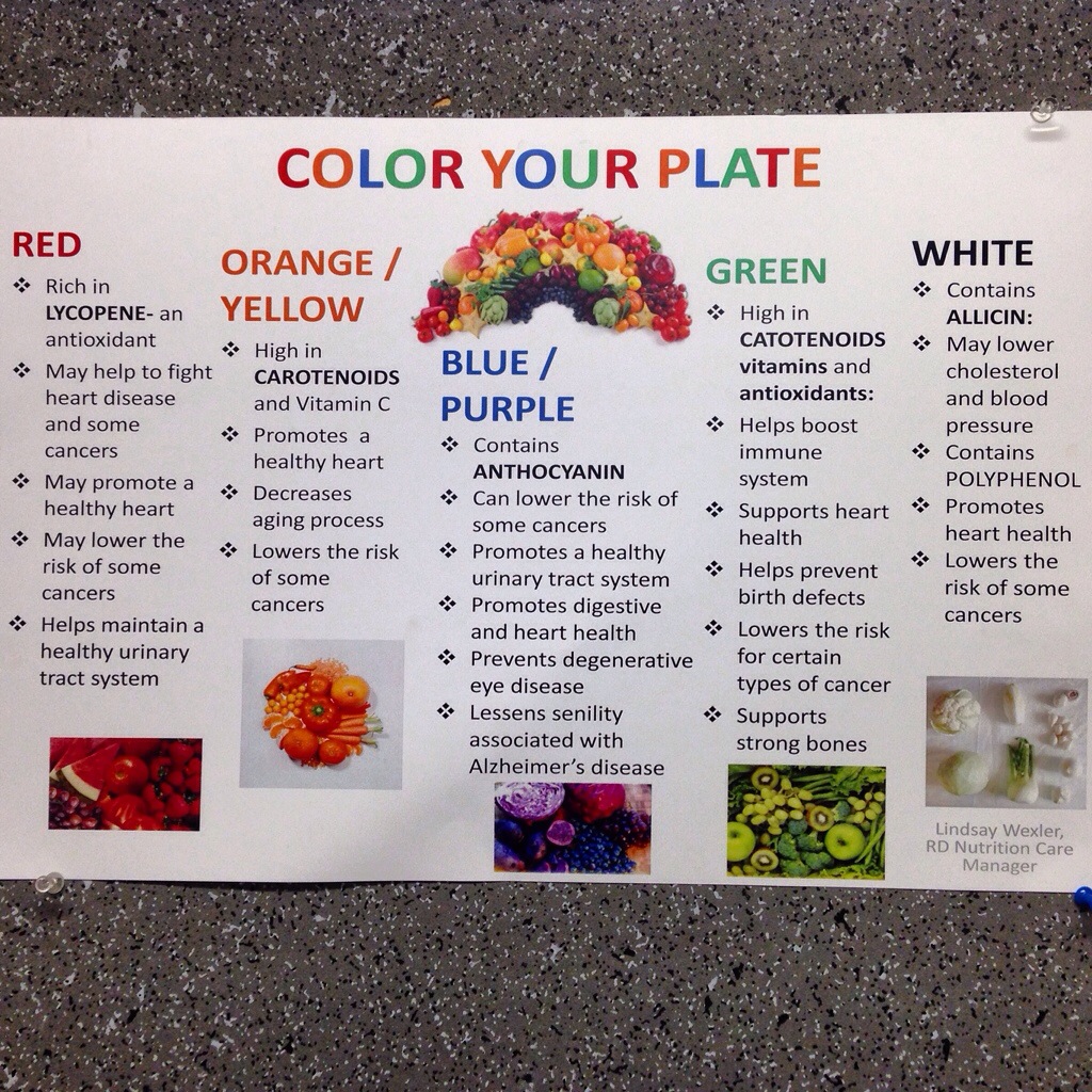 Next time you sit down for a meal, look at the colors. Is there a variety? Is it a colorful plate?